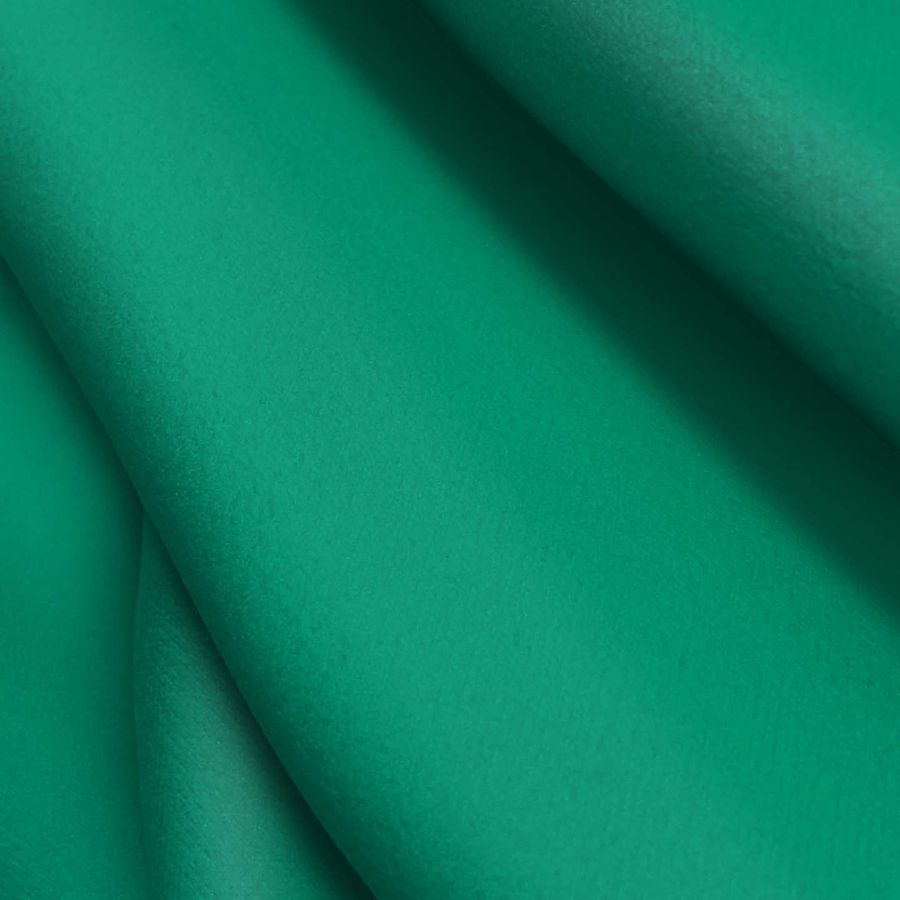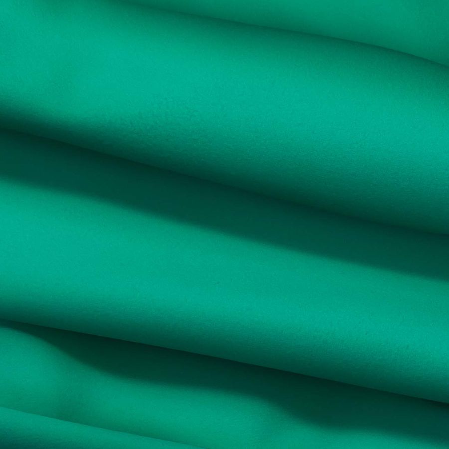La tela base de esta pieza es Microfibra para Toalla - Swing, compuesta por 100% poliéster y con un gramaje de 200 gr/m2. El color liso impreso en esta tela es Azul Esmeralda, cuyo CMYK es de 81 13 65 1, con predominancia de la tinta cian y un toque de magenta, consiguiendo un color verde brillante. Este color secundario evoca la naturaleza, la frescura y la primavera, y combina especialmente bien con tonos amarillos y naranjas, así como con tonos terrosos. El tejido se imprime con el color liso a una sola cara mediante impresión digital textil.