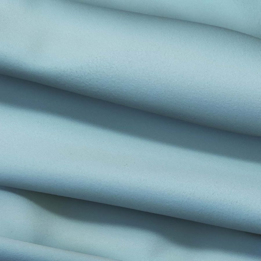 La tela base de este producto es la Microfibra para Toalla - Swing, una microfibra de 100% Poliéster con un gramaje de 200 gr/m2 y un ancho de tela de 160 cm. El color liso impreso es de un suave tono Azul Hielo, cuyo CMYK es de 42, 5, 13, 0. El tono Azul Hielo es una mezcla de Azul con un toque de Blanco, lo que le da un aspecto fresco y luminoso ideal para tonos veraniegos. Este color combina muy bien con otros tonos suaves como el Gris Claro, el Blanco Roto, el Beige o el Rosa Pálido.