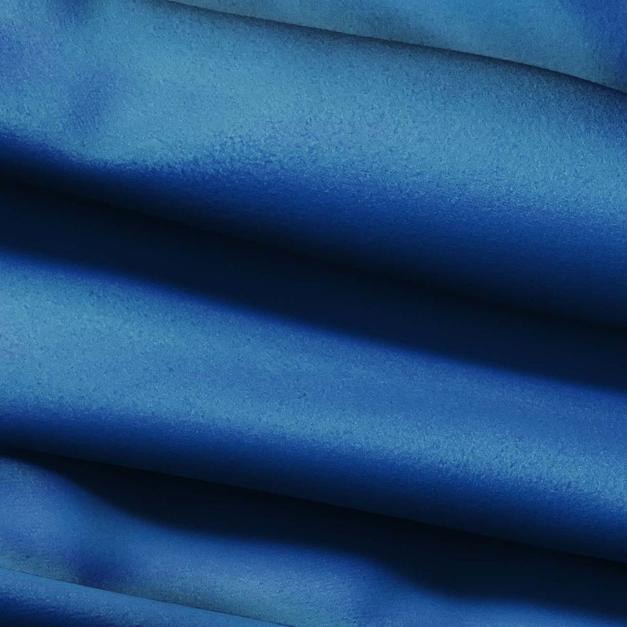 La tela base es la Microfibra para Toalla - Swing de composición 100% poliéster con un gramaje de 200 gr/m2 y ancho de 160 cm. El color del tejido liso impreso es Azul Montaña, con una codificación CMYK de 92 62 22 6. Este color nos lleva a pensar en un azul profundo e intenso, con un toque de vibración y fuerza. En términos de combinación de colores, el Azul Montaña funciona muy bien con tonos neutros como el blanco, el gris y el negro, generando un balance interesante.