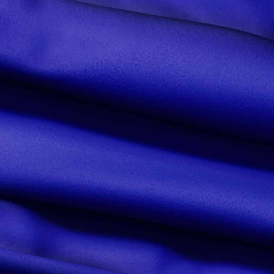 La tela base de esta descripción es Microfibra para Toalla - Swing, de tipo microfibra y 100% poliéster con un gramaje de 200 gr/m2, un ancho de 160 cm y en color liso azul uniforme. El color se indica a través del CMYK 100 93 19 4, lo que significa que predominan las tintas cian y magenta en la mezcla, seguidas de la tinta yellow y una mínima cantidad de tinta black. El color secundario es un tono de violeta oscuro, que puede combinarse con tonos azul claro, gris y blanco.