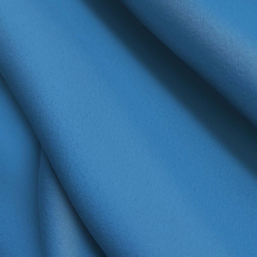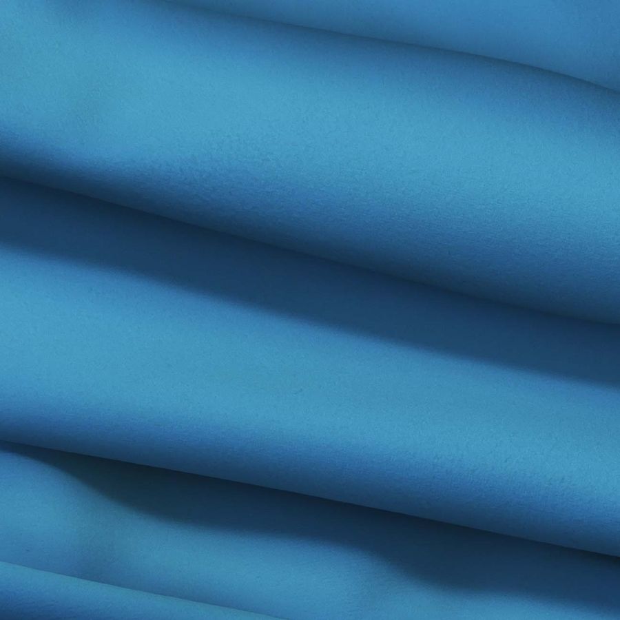 La tela base de este tejido es la Microfibra para Toalla - Swing, una tela de microfibra 100% poliéster con un gramaje de 200 gr/m2 y un ancho de 160 cm. Se trata de una tela suave al tacto y con una textura lisa, ideal para su uso en toallas, paños y albornoces tanto en el hogar como en el deporte. El color liso impreso en esta tela es el Azul Virgen, cuyo CMYK es 77 40 6 0. Es un color intenso y llamativo, que se combina especialmente bien con tonos blancos y grises.