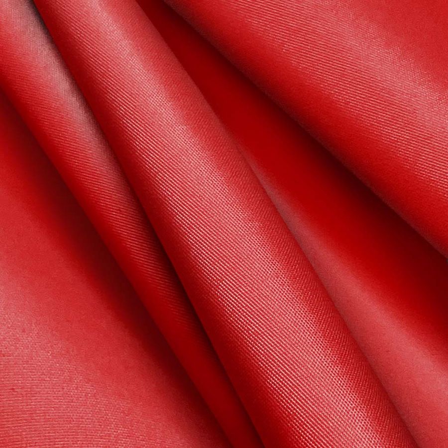 La tela base es Microfibra Reciclada - Biarritz, compuesta por 100% poliéster con un gramaje de 110 gr/m2 y un ancho de 147 cm. El color liso impreso es Rojo, Cresta de gallo, representado por un CMYK de 17 100 100 8. El color es llamativo y vibrante, con tonos intensos y brillantes. Representa la pasión y la fuerza, al mismo tiempo que transmite energía positiva. Combinado con tonos neutros como el gris o el blanco, resalta y crea un contraste interesante.