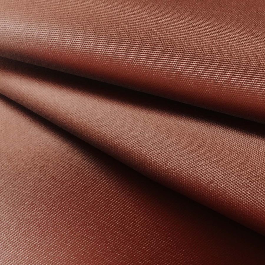 La tela base es Microfibra Reciclada - Biarritz, con composición 100% poliéster, gramaje de 110 gr/m2 y ancho de 147 cm. El color liso impreso es Marrón Cedro, con un CMYK de 36-76-78-52. Este color tiene una tonalidad cálida que combina perfectamente con colores como beige, blanco, negro y gris. La tela está impresa a una sola cara por impresión digital textil, lo que significa que el color no penetra completamente en la fibra del tejido, sino que se encuentra en la superficie.
