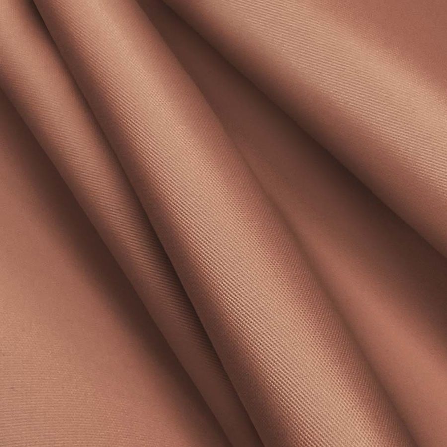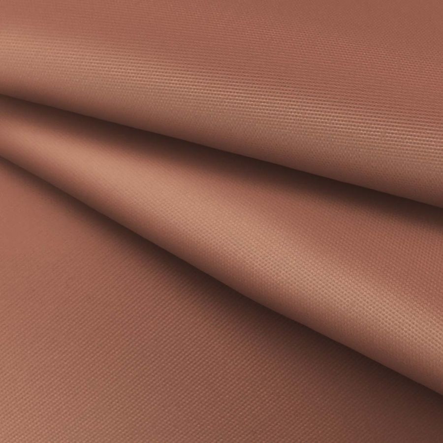 La tela base es Microfibra Reciclada - Biarritz, compuesta por 100% poliéster, con un gramaje de 110 gr/m2 y un ancho de 147 cm. Su color es marrón cuero viejo, con un CMYK de 29 60 61 25, lo que refleja una tonalidad cálida y terrosa. Este color secundario transmite elegancia, sofisticación y misterio, y combina bien con otros tonos tierra como beige, crema y mostaza, así como con colores complementarios como el azul oscuro o el naranja.