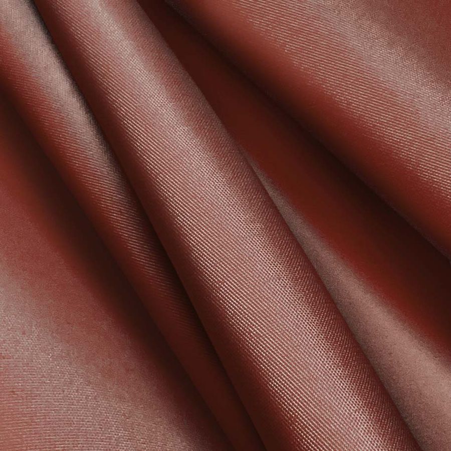 La tela base de este tejido es de microfibra reciclada tipo Biarritz, compuesta al 100% por poliéster, con un gramaje de 110 gr/m2 y un ancho de 147 cm. Su color impreso es marrón hígado, con una combinación de tintas de cian, magenta, amarillo y negro con un CMYK de 35 82 82 51. Este tono marrón es un color secundario que se forma a partir de la combinación de los tres colores primarios: cian, magenta y amarillo. Este marrón refleja elegancia, sobriedad y sofisticación, y combina muy bien con cámelos, naranjas y tonos neutros.