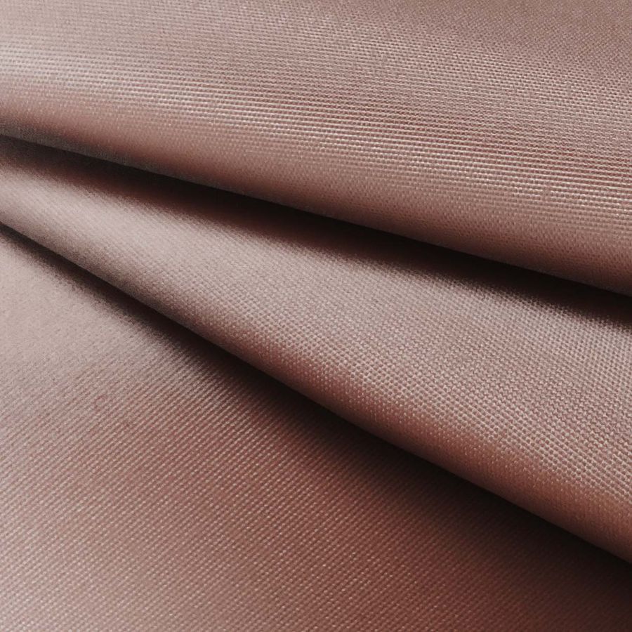 La tela base es la Microfibra Reciclada - Biarritz, de composición 100% poliéster y un gramaje de 110 gr/m2. El color liso impreso es de un tono marrón nuez moscada, con un CMYK de 38 51 49 37. Este color, de tonalidad intensa y cálida, se asocia con la naturaleza, transmitiendo sensaciones como la calma y la serenidad. Combina bien con otros tonos tierra, cremas, verdes y azules.