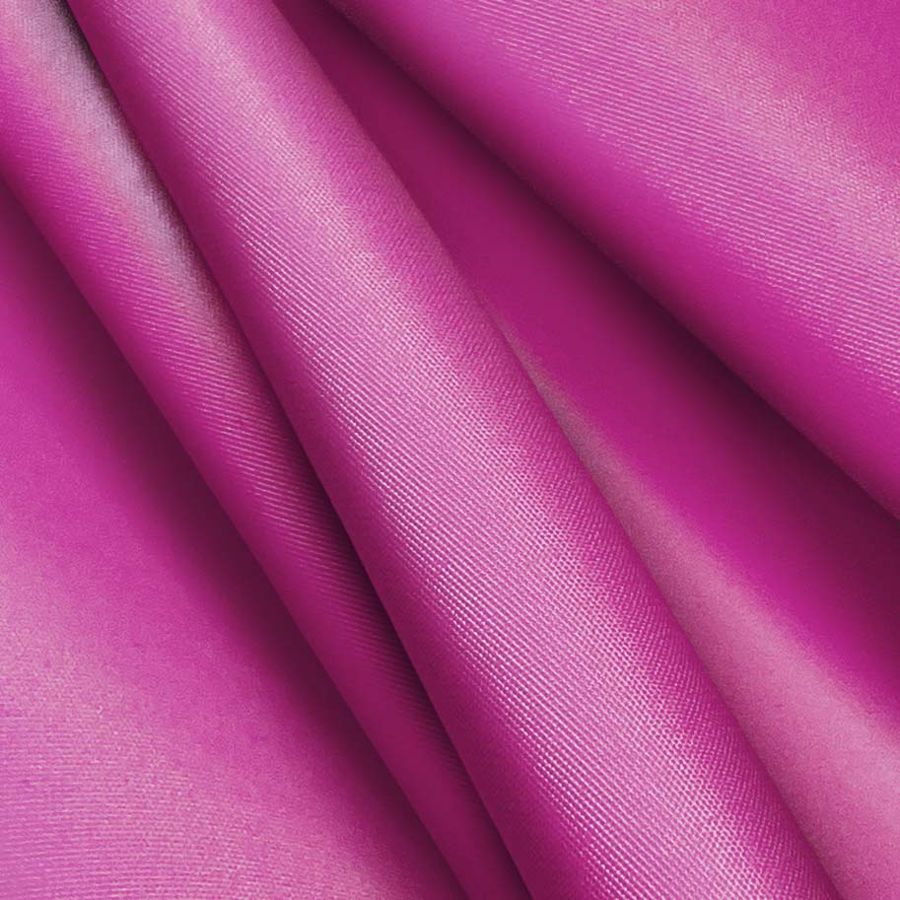 La tela base es la Microfibra Reciclada - Biarritz, con una composición del 100% de poliéster, un gramaje de 110 gr/m2 y un ancho de 147 cm. Además, cuenta con la certificación GRS, lo que nos indica que es una tela sostenible y reciclada. El color liso impreso en esta tela es un Morado Violeta Rojizo Medio, con un CMYK de 28 90 6 0, lo que nos muestra un color intenso y vibrante. Este color se combina de forma particular con tonos beige, rosa claro y azul claro. Es importante destacar que el tejido está impreso con el color liso a una sola cara por impresión digital textil, lo que supone una alta calidad en la impresión.