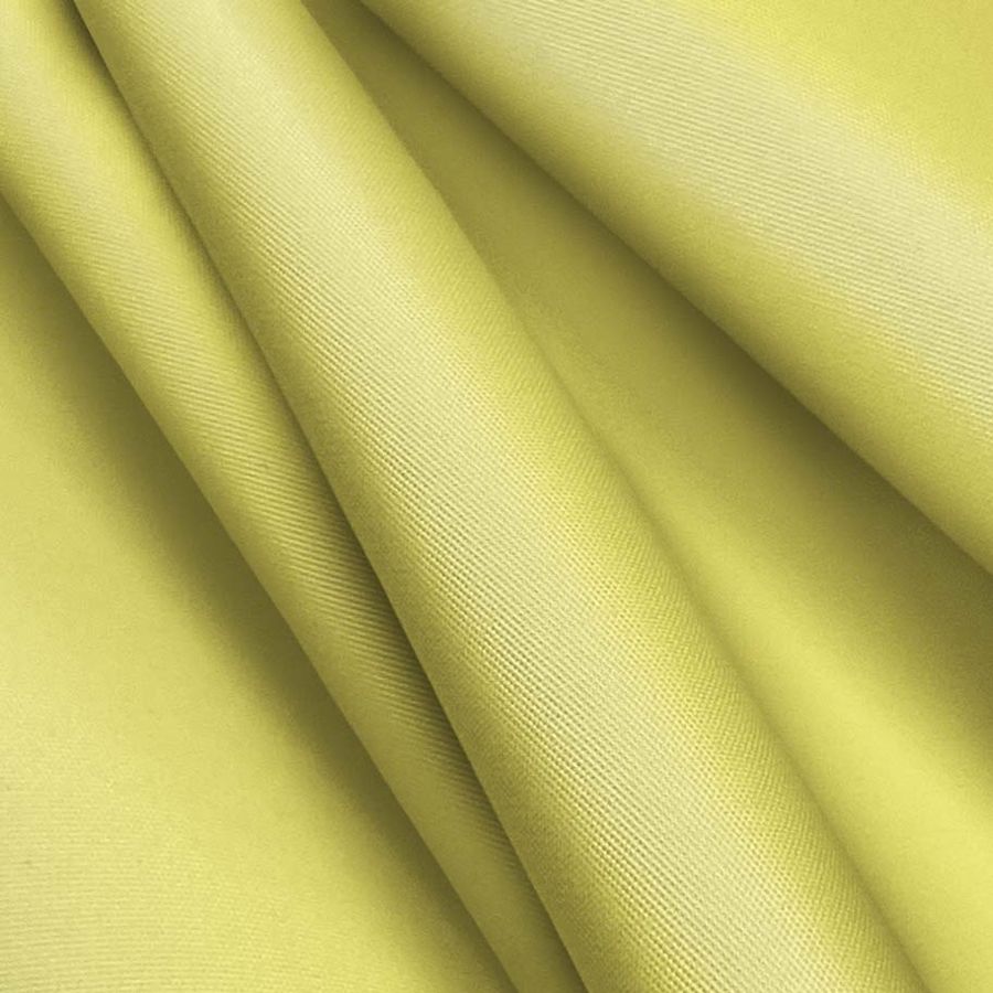 La tela base es la Microfibra Reciclada - Biarritz, compuesta en su totalidad por poliéster con un gramaje de 110 gr/m2 y un ancho de 147 cm. El color liso impreso en esta tela es Amarillo-Níquel-Titanio con un CMYK de 5 0 70 0. Este color secundario posee un matiz dorado y grisáceo que le brinda una elegancia y sofisticación únicas. Combinado con tonalidades neutras, como el blanco o el negro, se acentúa su tono dorado. En combinación con tonos cálidos, como el rojo o el naranja, se realza su tonalidad grisácea.