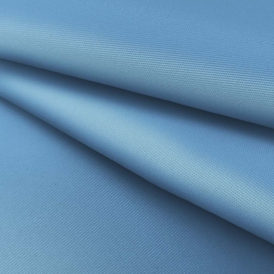 La tela base es la Microfibra Reciclada - Biarritz, compuesta por 100% Poliéster, con un gramaje de 110 gr/m2 y un ancho de 147 cm. El color liso impreso es Azul Acero, con una combinación de tintas CMYK de 64 32 4 0. Este tono es una mezcla de azul verdoso y grisáceo, que simboliza la confianza, la estabilidad y la fuerza. Este color secundario combina perfectamente con tonos grises, blanco, negro y azul más oscuros.