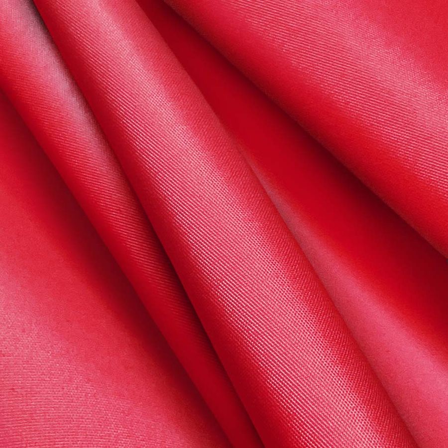 La tela base es la Microfibra Reciclada - Biarritz, de composición 100% poliéster, con un gramaje de 110 gr/m2 y un ancho de 147 cm. El color liso impreso es Rojo-Manzana Caramelo, con un CMYK de 2 100 81 0, lo que representa un rojo intenso con matices dorados. El color secundario Manzana Caramelo es un tono dorado suave y brillante que combina especialmente bien con verdes y azules, aportando luminosidad y calidez. Es importante destacar que la tela está impresa con este color liso a una sola cara por impresión digital textil, lo que permite obtener diseños complejos y nítidos en alta calidad.
