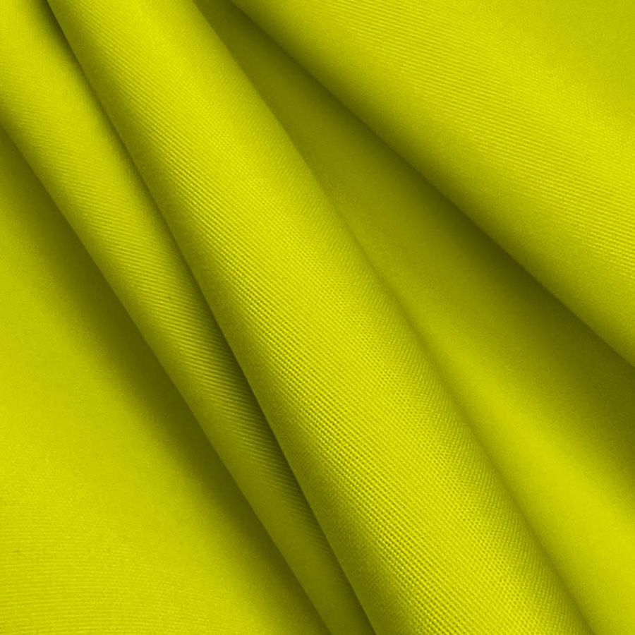 La tela base de esta pieza es la Microfibra Reciclada - Biarritz, una microfibra de poliéster de 110 gr/m2 y 147 cm de ancho. El color liso impreso es un verde amarillento opaco, el cual se logra mediante una impresión digital textil con una combinación de 31 de cian, 4 de magenta y 98 de amarillo, junto con 0 de negro en el CMYK. Este color transmite la sensación de frescura, naturaleza y vitalidad, y combina especialmente bien con tonos neutros como grises y blancos, así como con tonos tierra como terracotas y marrones.