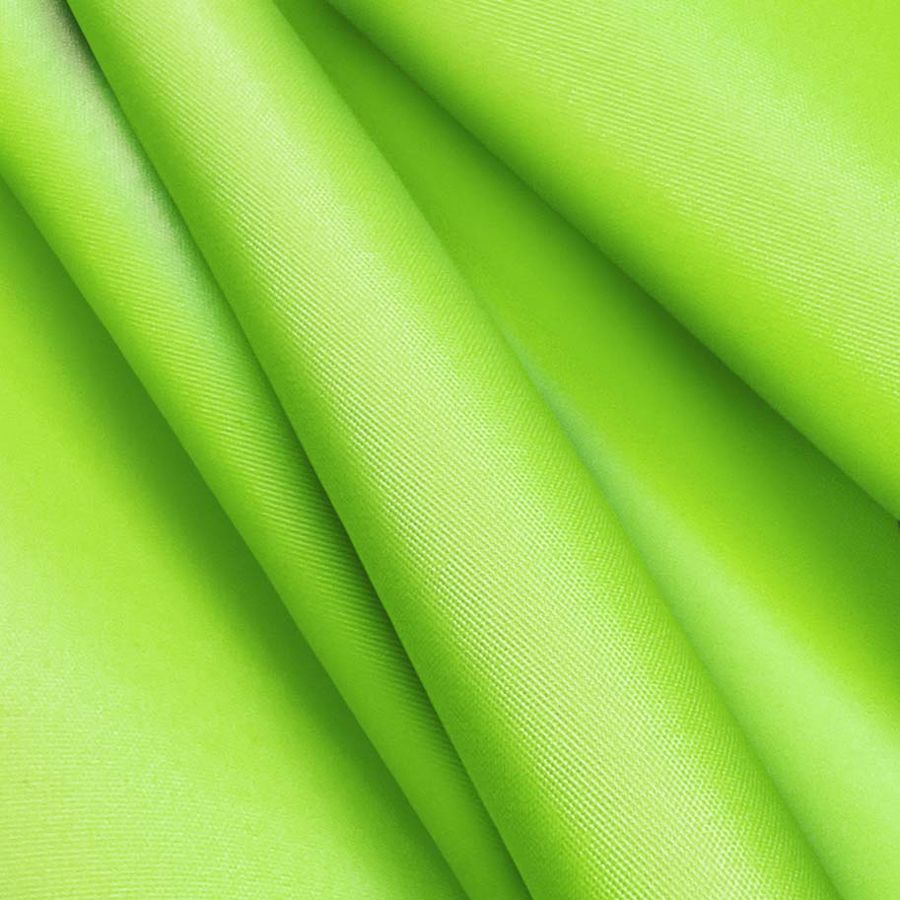 La tela base es la Microfibra Reciclada - Biarritz, una tela de microfibra compuesta al 100% por poliéster con un gramaje de 110 gramos por metro cuadrado y 147 cm de ancho. El color secundario impreso es un tono de verde lima con una mezcla de tinta cian de 46, tinta amarilla de 100 y sin tinta magenta ni negra. Este color es vibrante y fresco, y combina bien con otros tonos pastel y tierra.