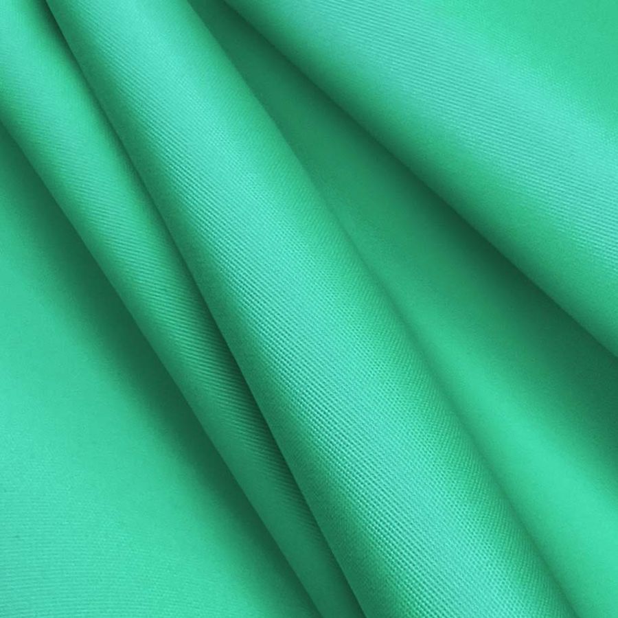 La tela base es la Microfibra Reciclada - Biarritz, un tejido de microfibra con una composición del 100% poliéster, un gramaje de 110 gr/m2 y un ancho de 147 cm. El color liso impreso es verde acuático, con un CMYK de 63 0 57 0 y una textura suave al tacto. Este color se combina de manera particular con tonalidades de azul y blanco, lo que evoca la frescura de la brisa del mar y la serenidad del agua cristalina.