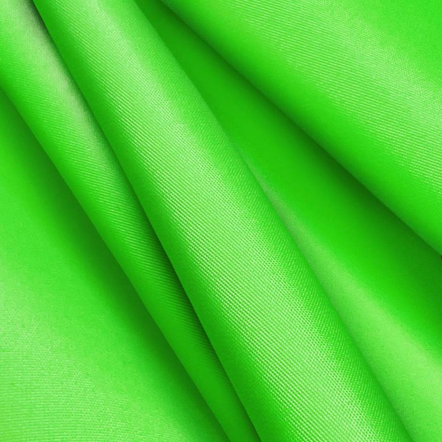 La tela base es Microfibra Reciclada - Biarritz, compuesta por 100% poliéster y con un gramaje de 110 gr/m2. Su ancho es de 147 cm y está certificada GRS, además de ser una tela sostenible debido a su carácter reciclado. El color liso impreso es Veneno Verde (C:63 M:0 Y:100 K:0), impreso a una sola cara por impresión digital textil. La tela tiene características suaves y una textura delgada y rígida.