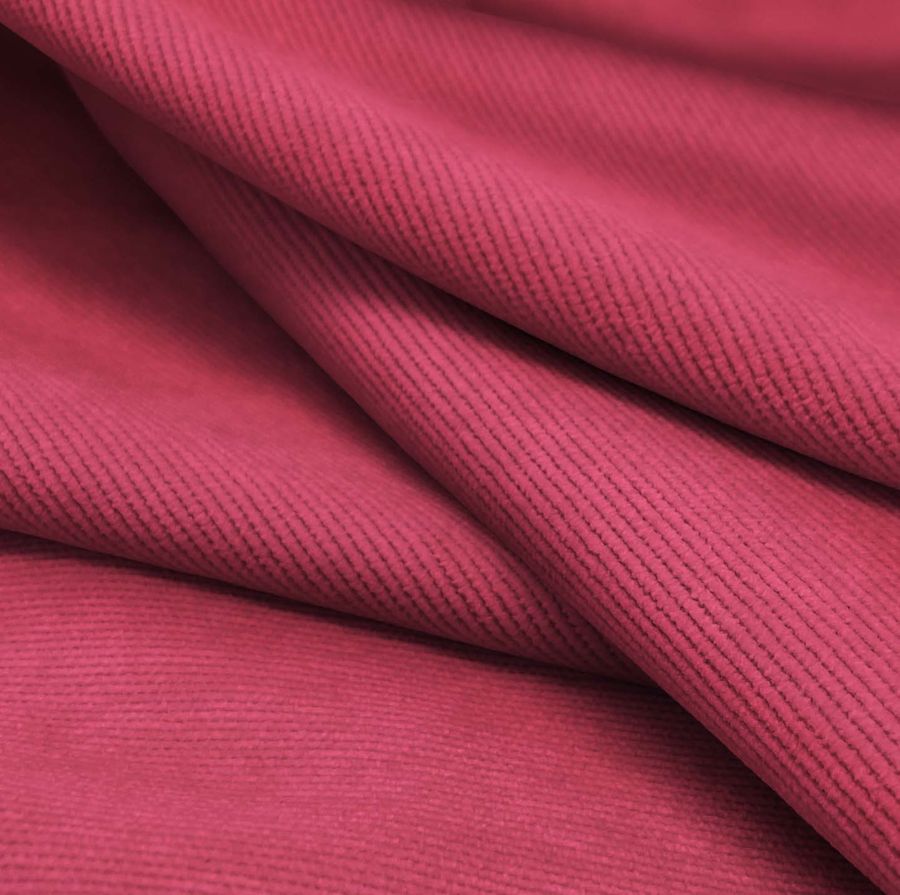 La tela base, Pana Aterciopelada - Dublin, se presenta en una suave combinación de poliéster, poliamida y elastano con una durabilidad de 280 gr/m2 y una anchura de 150 cm. La totalidad del sustrato se caracteriza por tener una textura suave y brillante que añade una dimensión delicada a cualquier confección de diseño. El color impreso consiste en un vibrante tono de Rojo Deseo, formado por un CMYK de 19 86 51 8, lo que significa que está compuesto principalmente por tonos magenta y un toque de cian y amarillo. El color combina bien con azul marino y tonos de verde esmeralda. Esta tela está impresa con el color liso a una sola cara por impresión digital textil, lo que significa que el pigmento se aplica directamente sobre la superficie del tejido en un proceso de impresión.