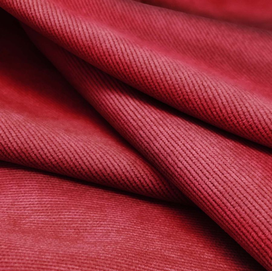 La tela base de esta descripción es la Pana Aterciopelada-Dublin, compuesta por 85% de poliéster, 12% de poliamida y 3% de elastano, con un gramaje de 280 gr/m2 y un ancho de 150 cm. El color liso impreso es de tonalidad Rojo Escarlata, con un CMYK de 24 98 73 20. Este color es mágico y emocionante, evoca la pasión, el peligro, el amor y la urgencia. Simbólicamente, el rojo es el color del fuego y la sangre, y está asociado con la guerra y la violencia. También representa el amor, el deseo y el romanticismo. Este tono combina bien con tonalidades marrones, grises y beiges.