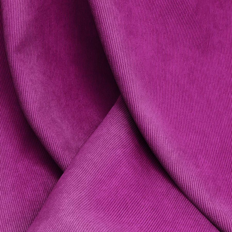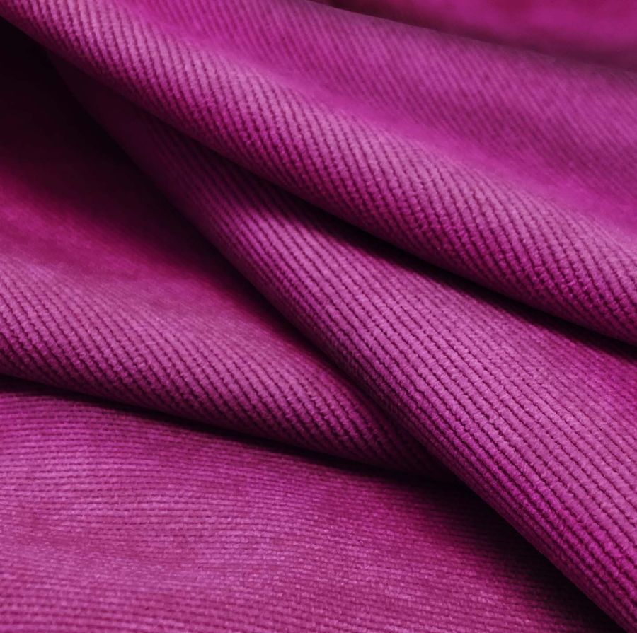 La tela base de este tejido es la Pana Aterciopelada - Dublin, con una composición del 85% de poliéster, 12% de poliamida y 3% de elastano. El color impreso es una combinación de rojo y púrpura, con un CMYK de 50 100 18 9. Este color secundario tiene una vibración intensa y cálida, lo que lo hace ideal para transmitir emotividad. Además, su combinación de tonos permite crear contrastes muy interesantes con el verde, el negro y el oro. Es importante señalar que el tejido está impreso con este color a una sola cara por impresión digital textil, lo que garantiza la calidad y la precisión en la impresión.