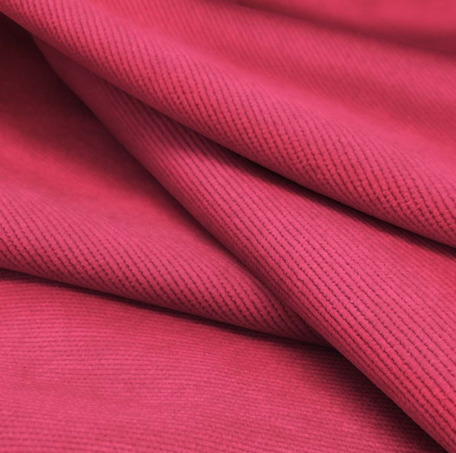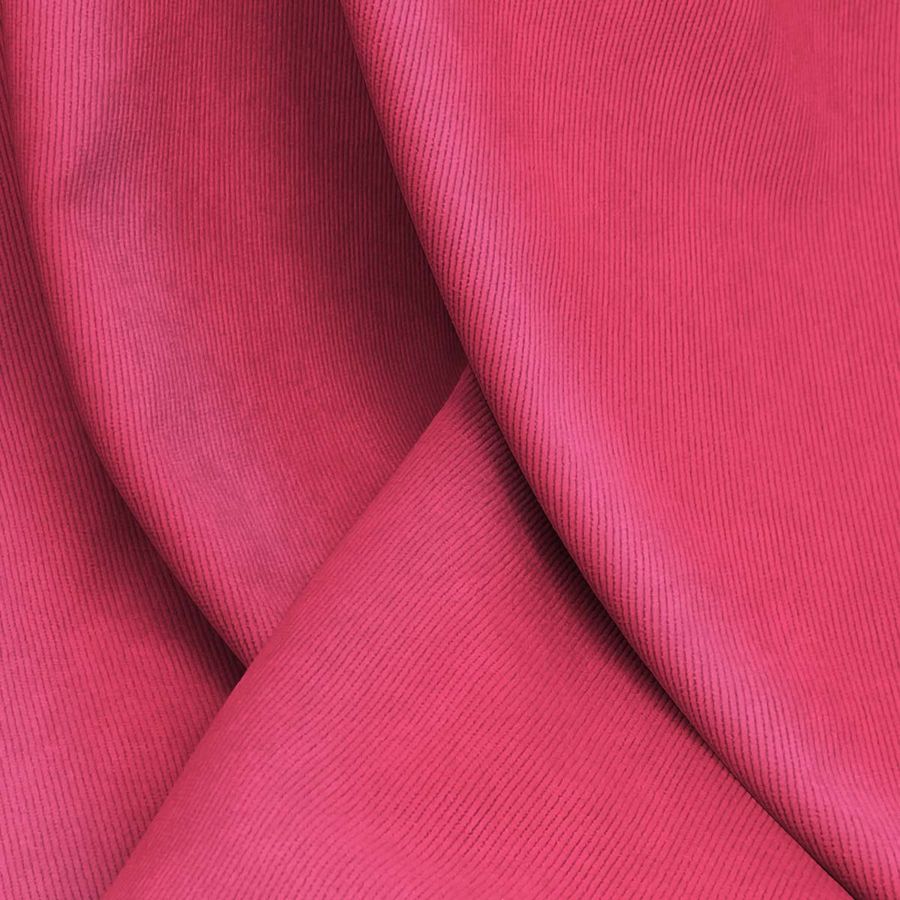 La tela base es la Pana Aterciopelada - Dublin, con una composición de 85% poliéster, 12% poliamida y 3% elastano, un gramaje de 280 gr/m2 y un ancho de 150 cm. Está impresa en color liso Rojo Amaranto con un CMYK de 2 87 48 0, que confiere un matiz cálido y elegante. Este color secundario es una mezcla de rojo intenso con un toque de púrpura oscuro, que simboliza la pasión y el misterio. Combina perfectamente con tonos neutros como el beige o el negro, así como con colores intensos como el verde oscuro o el azul marino.