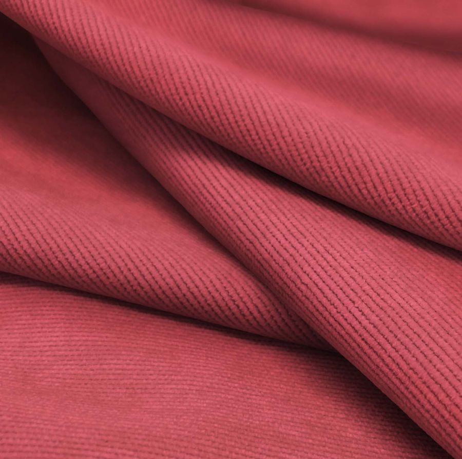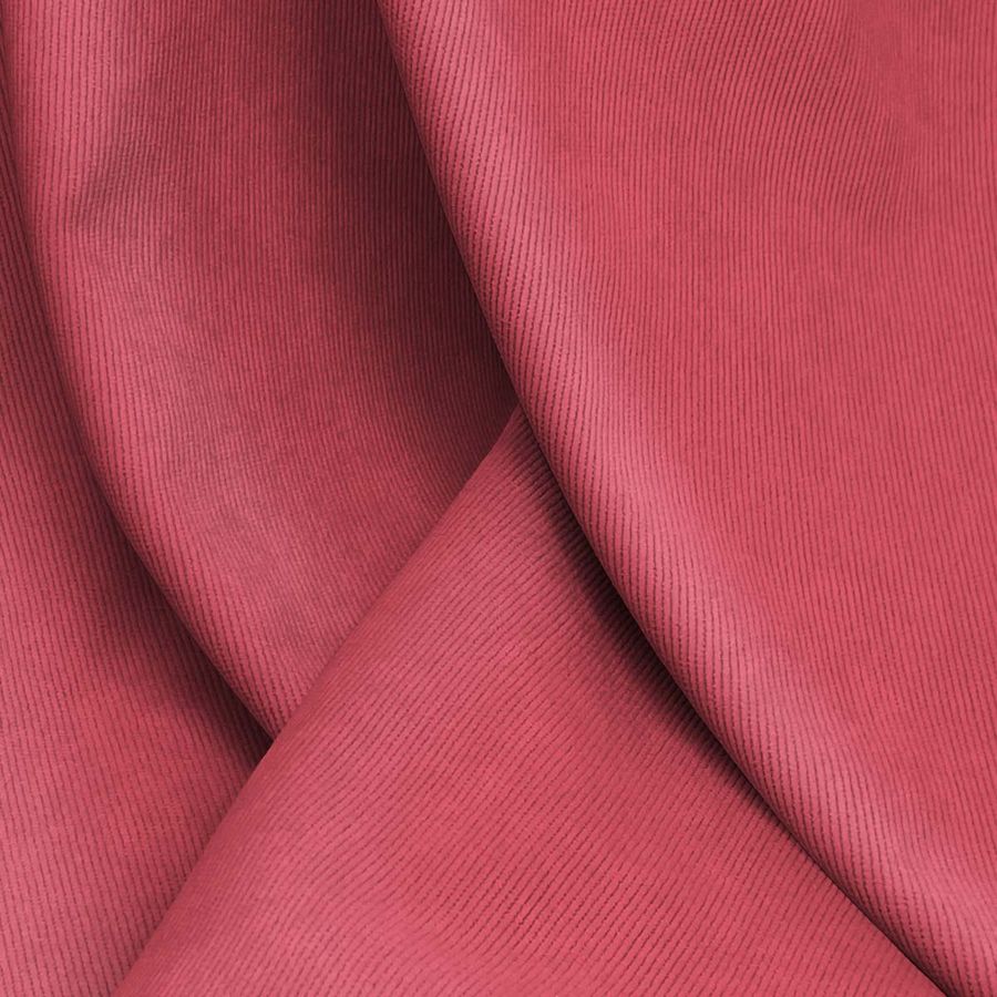 La tela base de este producto es la Pana Aterciopelada - Dublin, con una composición de 85% poliéster, 12% poliamida y 3% elastano, lo que le proporciona un tacto suave y una textura brillante y visual. El color liso impreso es Rojo Labio, con un contenido de CMYK de 18 82 57 7. Este color secundario representa la pasión y la vitalidad, que combina perfectamente con tonos más neutros como el blanco, beige o gris.