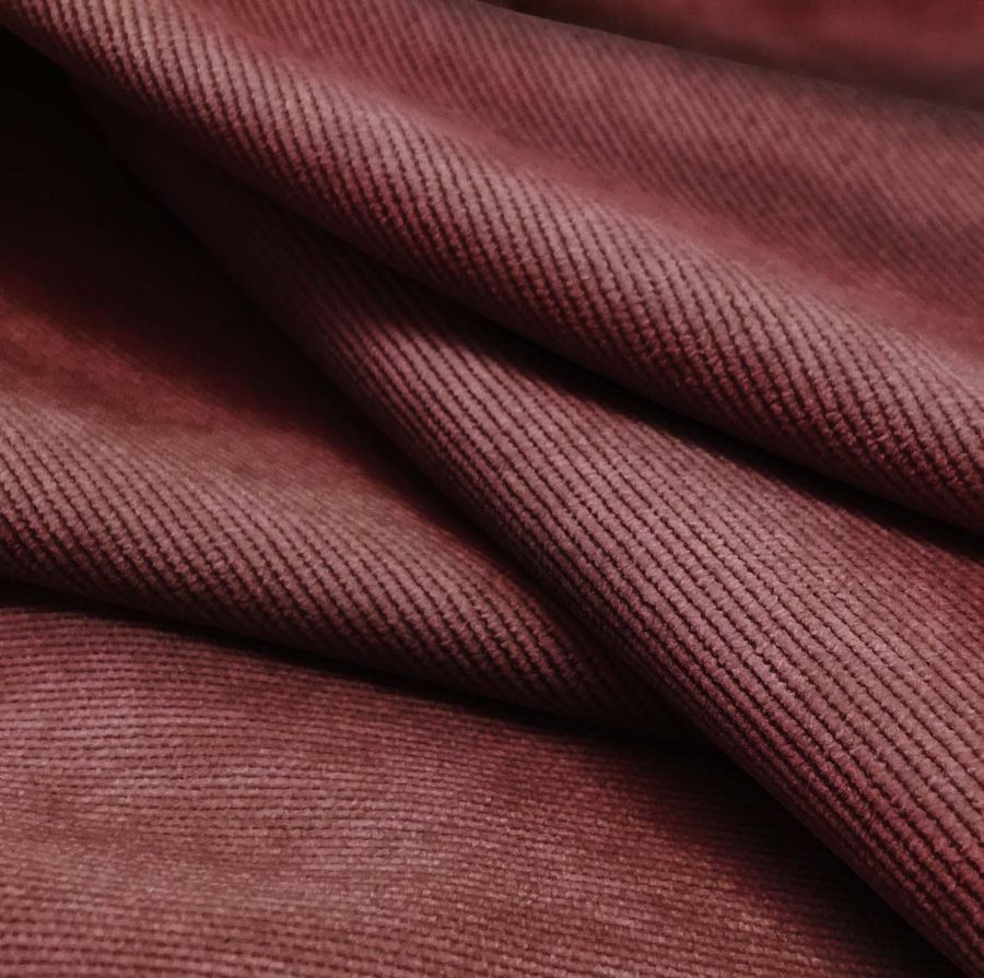 La tela base es Pana Aterciopelada - Dublin, una pana compuesta por 85% de poliéster, 12% de poliamida y 3% de elastano, con un gramaje de 280 gr/m2 y un ancho de 150 cm. El color liso impreso es Rojo Escarlata Oscuro, el cual se obtiene a través de una combinación de tintas cian, magente, yellow y black, con un contenido de CMYK de 38 82 57 59.