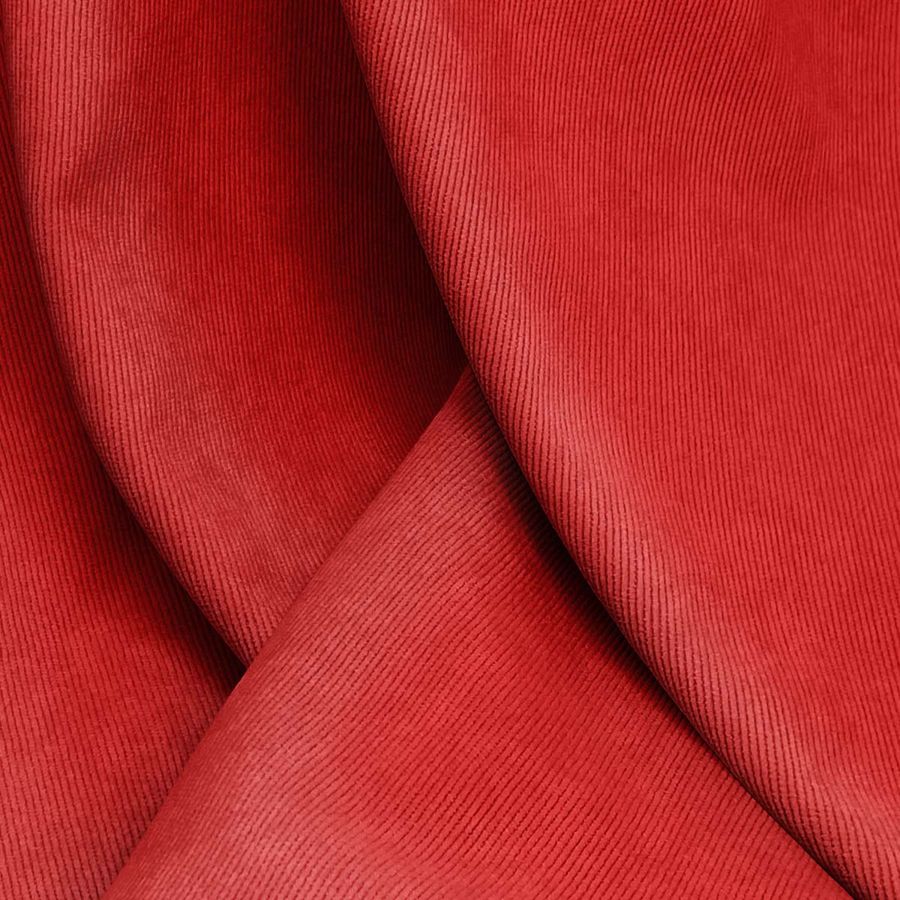 La tela base utilizada es la Pana Aterciopelada - Dublin, una tela de pana compuesta por un 85% de poliéster, un 12% de poliamida y un 3% de elastano. Tiene un gramaje de 280 gr/m2 y un ancho de 150 cm. El color liso impreso es el Rojo Sangre, con un CMYK de 18 100 100 8. Este color secundario se caracteriza por su intensidad y fuerza visual, transmitiendo emociones como la pasión, el amor o la ira. Combina muy bien con otros colores cálidos como el naranja o el amarillo, así como con tonos neutros como el gris o el blanco.