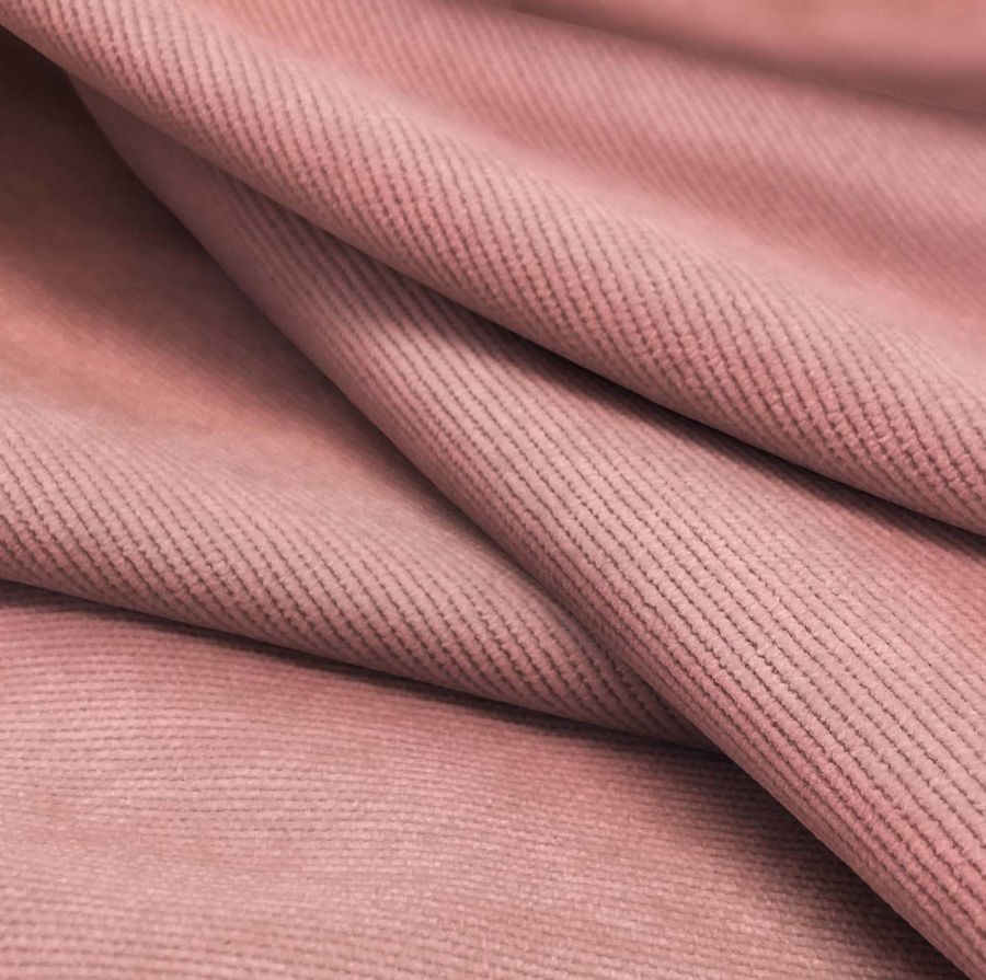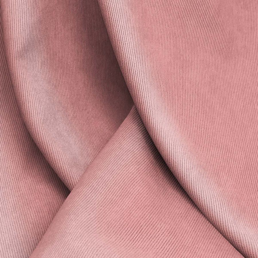 La tela base es la Pana Aterciopelada - Dublin, compuesta por un 85% de poliéster, un 12% de poliamida y un 3% de elastano, con un gramaje de 280 gr/m2 y un ancho de 150 cm. El color liso impreso es un tono de rojo coral rosa, cuyo CMYK es de 11 55 36 2. Este color se caracteriza por su intensidad y viveza, aportando una gran luminosidad a cualquier prenda o decoración en la que se utilice. Combina perfectamente con tonos neutros como el beige o el blanco, así como con tonos oscuros como el negro o el marrón.