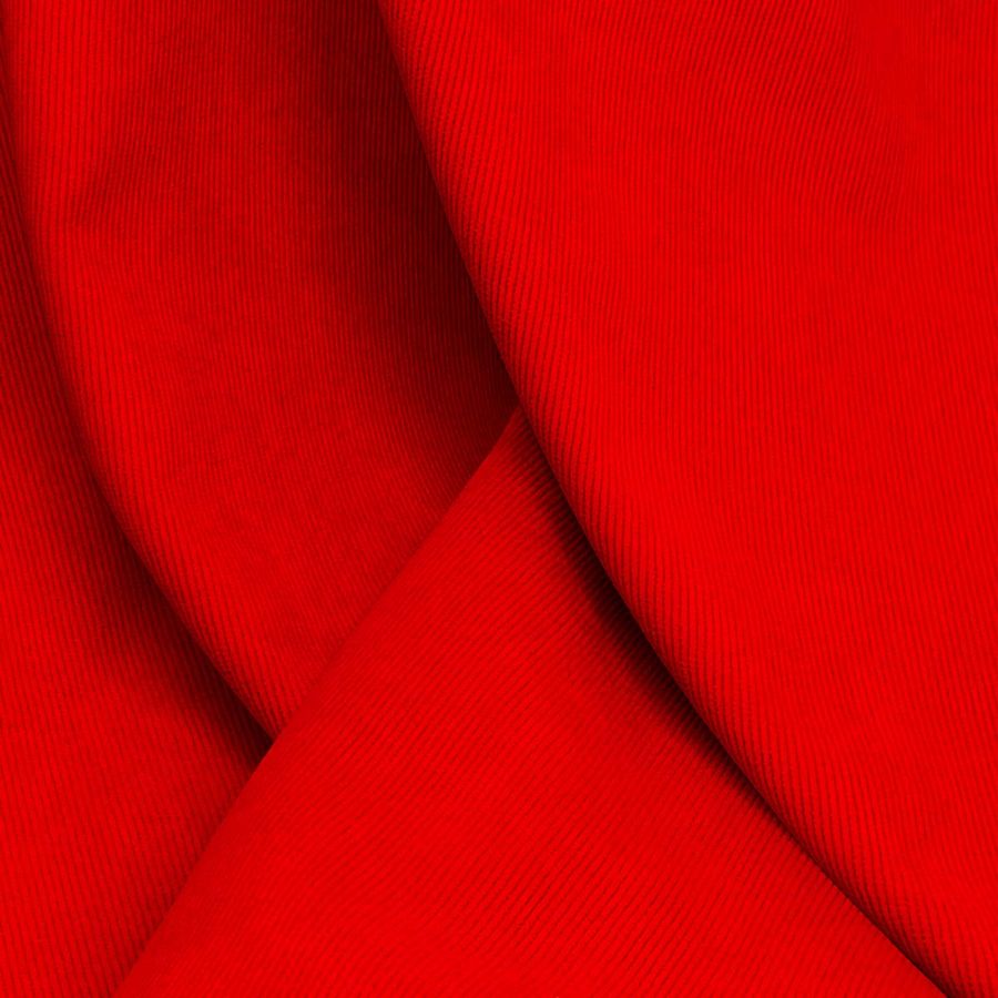 La tela base de este tejido es Pana Aterciopelada - Dublin, compuesta por 85% de poliéster, 12% de poliamida y 3% de elastano, con un gramaje de 280 gr/m2 y un ancho de 150 cm. Impreso en un color liso de rojo langosta, con un CMYK de 0 98 100 0, lo que significa que tiene una alta cantidad de magenta y amarillo, lo que le da su característico tono intenso y vivo. Este color combina muy bien con tonos neutros como el gris y el negro, así como con tonos complementarios como el verde y el azul.