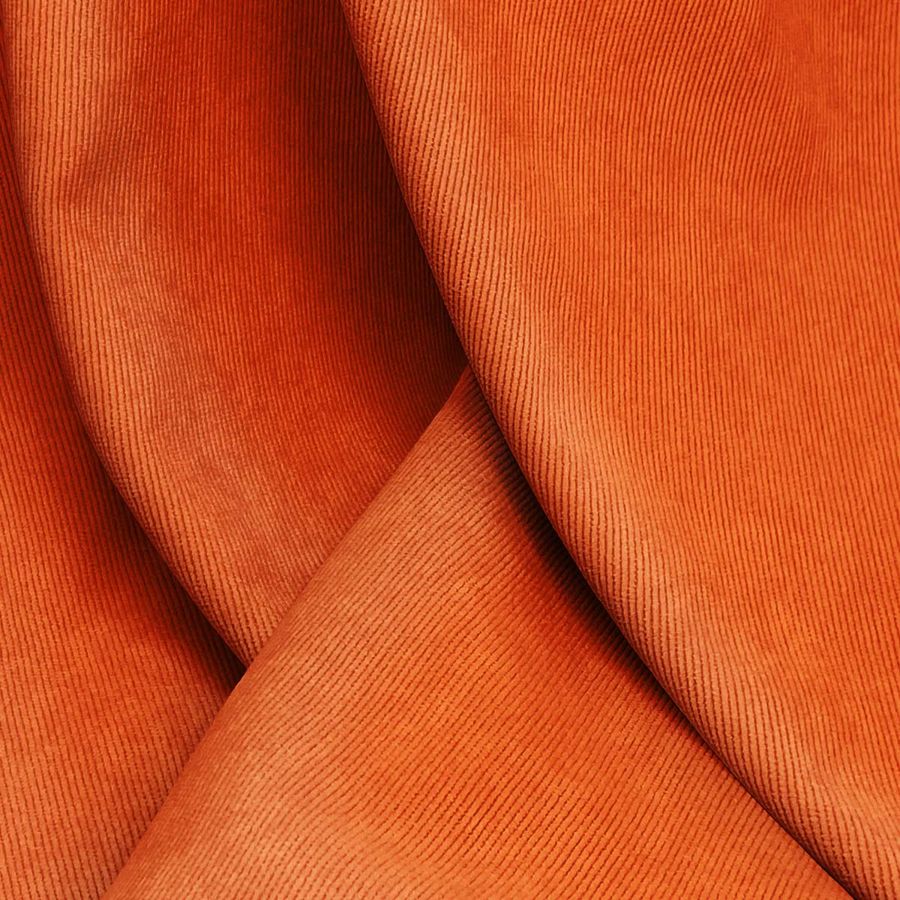La tela base es la Pana Aterciopelada - Dublin, compuesta por 85% poliéster, 12% poliamida y 3% elastano, con un gramaje de 280 gr/m2 y un ancho de 150 cm. El color impreso es Naranja Coquelicot con un contenido en tinta Cyan de 1, Magenta de 84, Yellow de 100 y Black de 0, en un formato CMYK de 1 84 100 0. Este color se caracteriza por ser un tono naranja brillante y vibrante que transmite energía y vitalidad. Combina bien con tonos neutros como el blanco, negro o gris, así como con colores complementarios como el azul o el verde.