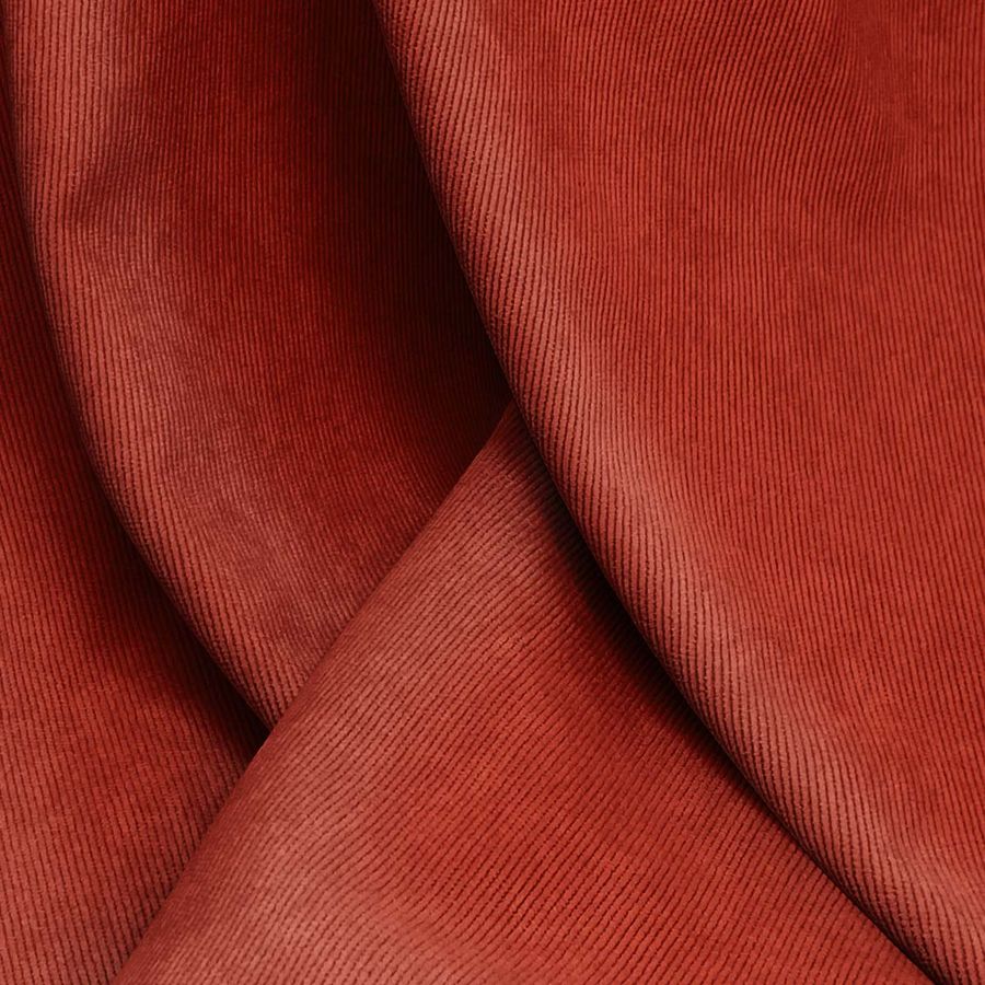 La Pana Aterciopelada - Dublin es una tela con una composición del 85% poliéster, 12% poliamida y 3% elastano y un gramaje de 280 gr/m2. El color liso impreso en esta tela es un Naranja Ladrillo Refractario, con un CMYK de 28 99 100 34. Este color representa la pasión, el entusiasmo y la emoción, y combina bien con tonos como el amarillo, rojo y marrón claro.