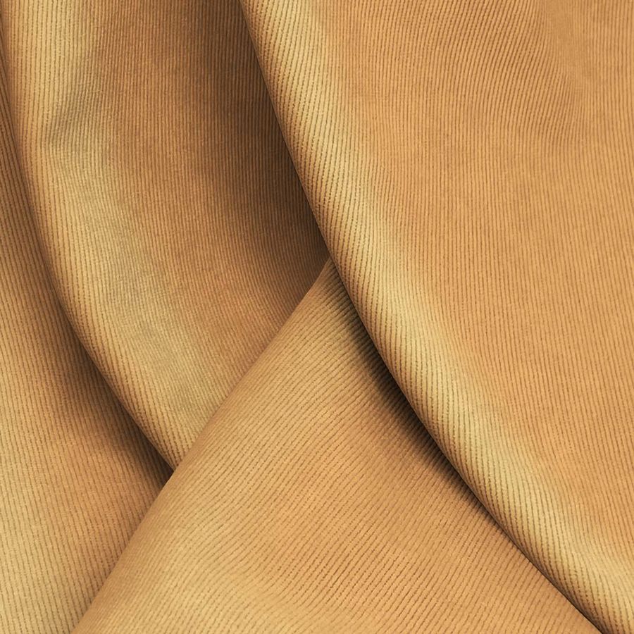 La tela base es la Pana Aterciopelada - Dublin, compuesta por 85% poliéster, 12% poliamida y 3% elastano, con un gramaje de 280 gr/m2 y un ancho de 150 cm. El color liso impreso es Naranja Calabaza Oscuro, con valores de tinta Cyan de 13, Magenta de 48, Yellow de 70 y Black de 2, en un CMYK de 13 48 70 2. Este tono se caracteriza por ser vibrante y cálido, evocando un ambiente acogedor y estimulante. Combina especialmente bien con grises y marrones cálidos, proporcionando un contraste seductor y sofisticado. La tela está impresa a una sola cara por impresión digital textil, lo que permite una gran precisión y definición en la impresión.