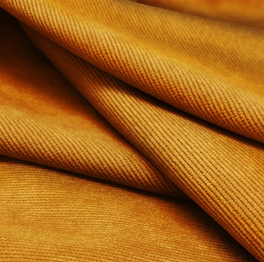 La tela base es la Pana Aterciopelada - Dublin, con una composición de 85% poliéster, 12% poliamida y 3% elastano, un gramaje de 280 gr/m2 y ancho de 150 cm. El color liso impreso es Naranja Albaricoque con un CMYK de 20 65 100 9. Este color se describe como vibrante y cálido, siendo una mezcla entre el naranja y el amarillo. Combina bien con colores tierra como el marrón, el beige y el verde oscuro.