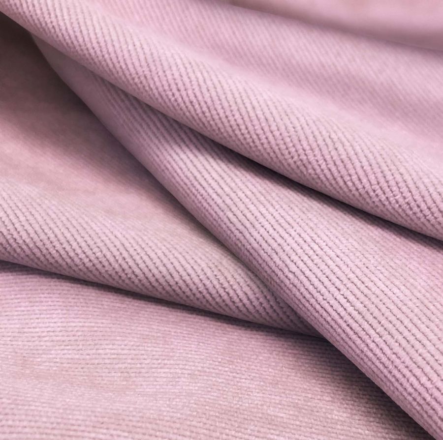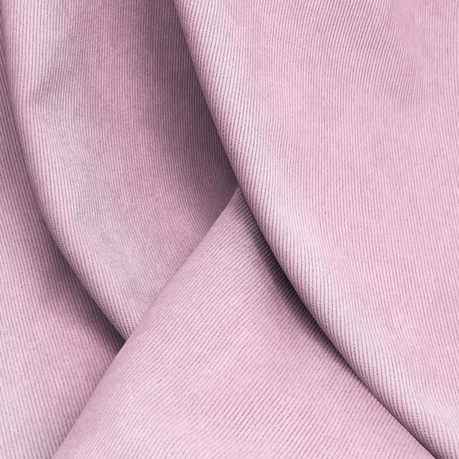 La tela base de esta prenda es la Pana Aterciopelada - Dublin, compuesta por un 85% de poliéster, un 12% de poliamida y un 3% de elastano. Su gramaje es de 280 g/m2 y su ancho es de 150 cm. El color liso impreso en esta tela es un rosa con tonos de algodón azucarado, con un CMYK de 0 37 0 0. Este color secundario es suave y dulce, creando una sensación de calidez y suavidad en la prenda. Combina muy bien con colores neutros como el beige o el blanco, o con colores pastel como el verde menta o el azul claro. Es importante destacar que este tejido está impreso con el color liso a una sola cara por impresión digital textil, lo que lo convierte en un tejido con mayor detalle gráfico.