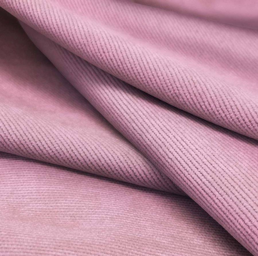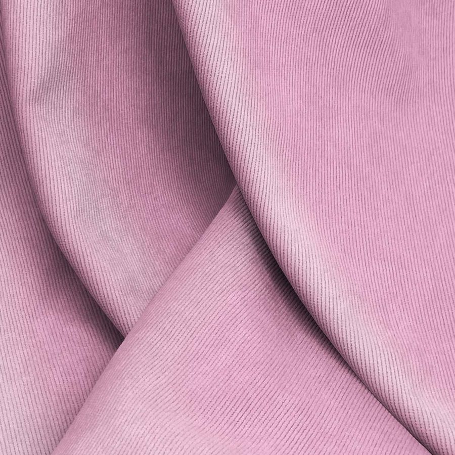 La tela base es la Pana Aterciopelada - Dublin compuesta por 85% POLIÉSTER, 12% POLIAMIDA y 3% ELASTANO. El color liso impreso es Rosa Begonia, con un CMYK de 6 51 5 0 y una impresión digital textil a una sola cara. Su textura se manifiesta en un suave y brillante tacto visualmente agradable. En cuanto al color secundario, el Rosa Begonia simboliza la amabilidad, la feminidad y la dulzura, combinando perfectamente con otros colores pastel y suaves como el crema, beige o el gris. Esta tela es ideal tanto para decoración como para moda, siendo aplicada en cojines, tapizados de sillas, sofás y ropa como pantalones, chaquetas, blazers o bolsos. Sus cuidados no incluyen el uso del blanqueador, con una temperatura máxima de 30ºC y un planchado a temperatura fría. Por último, su tecnología de impresión es SUBLIMACIÓN (POLIESTER), siendo impresa con una sola cara por tecnología digital textil sensitiva a la presión.