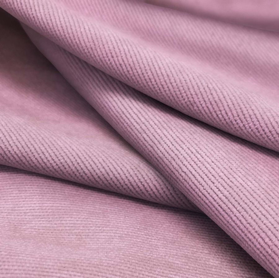 La tela base de este tejido es una Pana Aterciopelada de composición 85% poliéster, 12% poliamida y 3% elastano, con un gramaje de 280 gr/m2 y un ancho de 150 cm. El color liso impreso es un precioso tono rosa conocido como Cadillac Rosa, que se obtiene mediante la tecnología de impresión por sublimación, con un CMYK de 15 50 8 0. Este color se caracteriza por tener una tonalidad suave y cálida, con una intensidad visual brillante y una textura de tacto suave.