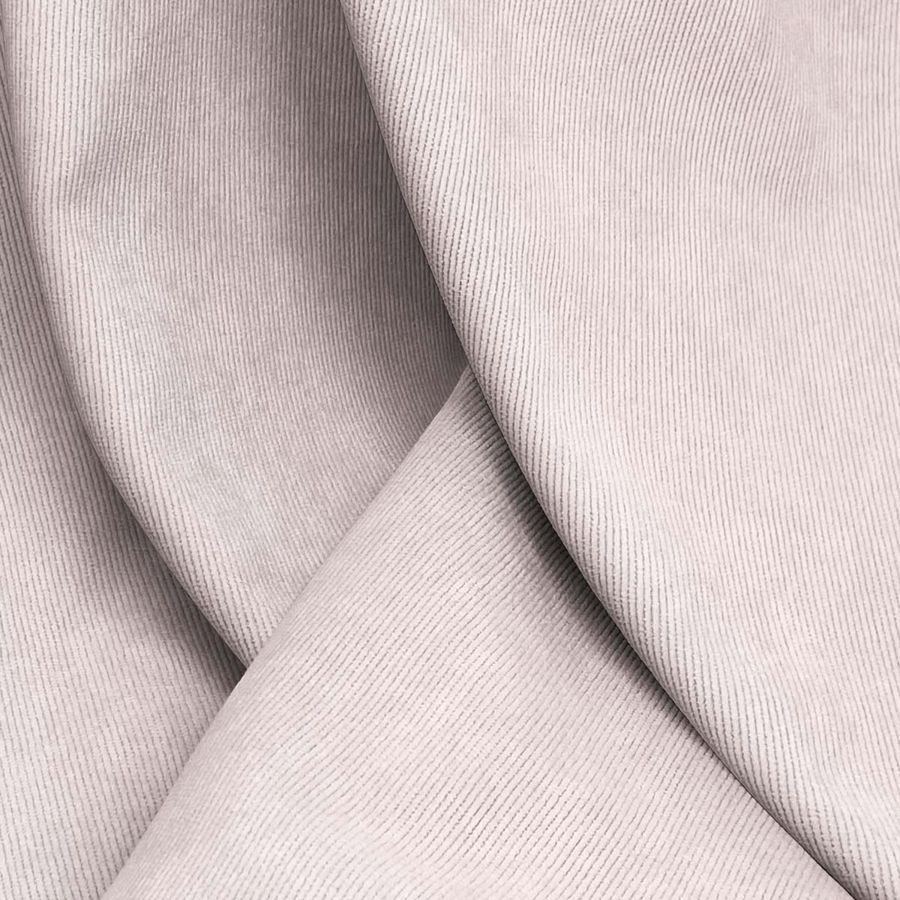 La tela base es la Pana Aterciopelada - Dublin de 280 gr/m2 y 150 cm de ancho, compuesta por un 85% de poliéster, 12% de poliamida y un 3% de elastano, lo que la hace más resistente y adaptable. El color liso impreso es una mezcla de rosa y MistyRose, en un tono suave y brillante. Su CMYK es 0 15 9 0, lo que indica una baja presencia de cian y negro, y mayor cantidad de magenta y amarillo para conseguir el efecto deseado. Este color combina perfectamente con tonos grises, blancos y tostados, creando una atmósfera acogedora.