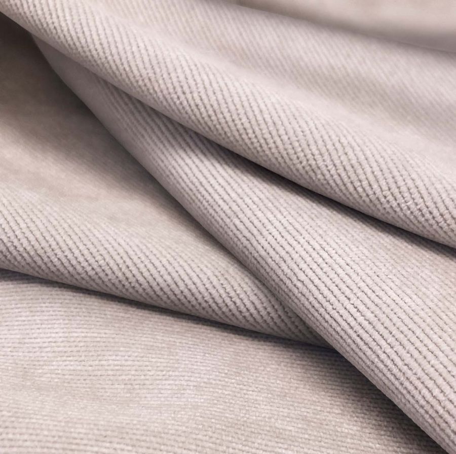 La tela base es una Pana Aterciopelada llamada Dublin, compuesta por 85% de poliéster, 12% de poliamida y 3% de elastano. Tiene un gramaje de 280 gr/m2 y un ancho de 150 cm. El color liso impreso es un rosa perla con un CMYK de 6 20 12 0. Este color tiene un tono suave y agradable, que evoca la delicadeza y la tranquilidad. Es un color muy versátil que combina fácilmente con otros colores, en particular con tonos neutros como el blanco, el beige y el gris.