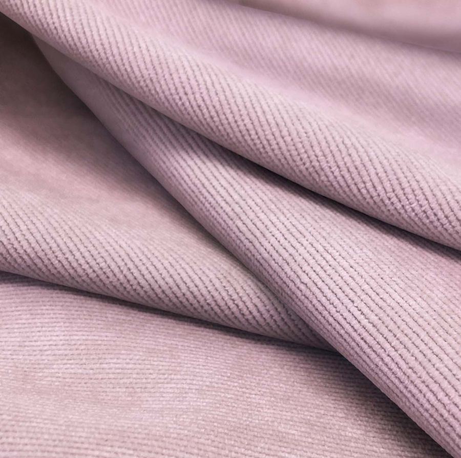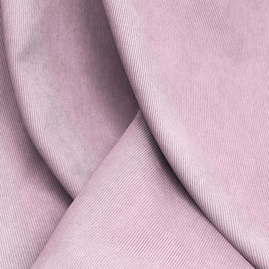 La tela base es la Pana Aterciopelada - Dublin, compuesta por un 85% de poliéster, un 12% de poliamida y un 3% de elastano. Su gramaje es de 280 gr/m2 y tiene un ancho de 150 cm. El color liso impreso es el rosa pintalabios, cuyo contenido en CMYK es de 5 36 4 0. Este color secundario es una tonalidad de rosa intenso, evocador y vibrante que se combina perfectamente con tonos claros como el blanco o el beige, y con tonalidades oscuras como el negro o el gris.