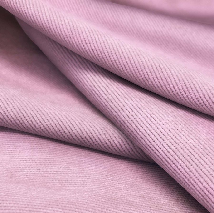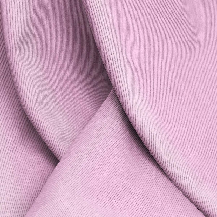 La tela base es la Pana Aterciopelada - Dublin, compuesta por 85% poliéster, 12% poliamida y 3% elastano, con un gramaje de 280 gr/m2 y un ancho de 150 cm. El color liso impreso es Rosa Claro Caliente, con un CMYK de 0 40 0 0. Los tonos inspiran calor, suavidad y dulzura, y combinan especialmente con tonalidades más oscuras como el verde oliva o el marrón chocolate. Es importante destacar que la tela está impresa con el color liso a una sola cara por impresión digital textil.