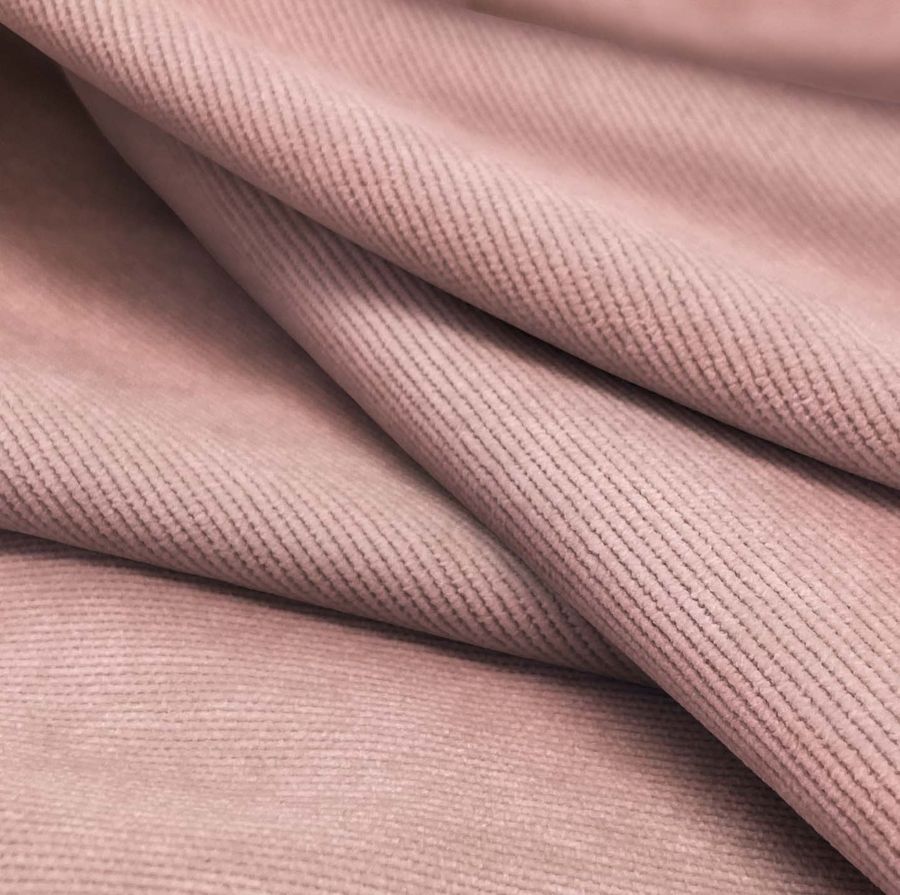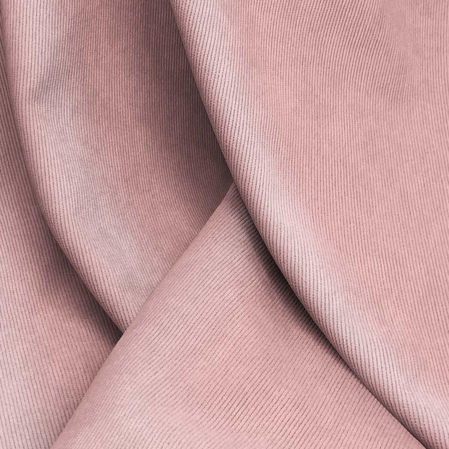La tela base, Pana Aterciopelada - Dublin, es una pana compuesta de un 85% de poliéster, un 12% de poliamida y un 3% de elastano; con un gramaje de 280 gr/m2 y un ancho de 150 cm. El color liso impreso que te ofrecemos es un rosa-lombriz con un CMYK de 10 44 29 1, un tono suave y brillante que combina con colores neutros, marrones cálidos y azul verdoso.