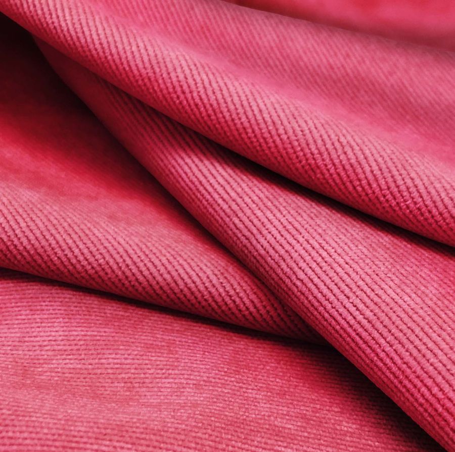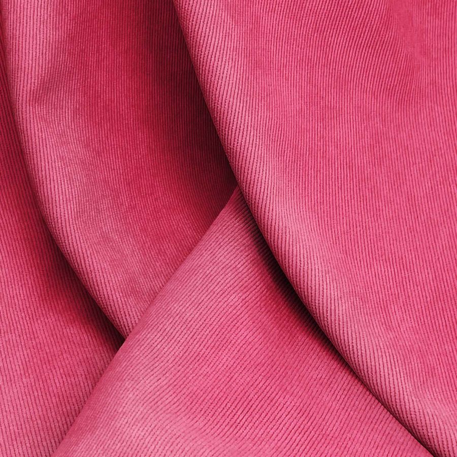 La tela base es la Pana Aterciopelada - Dublin, compuesta por 85% de poliéster, 12% de poliamida y 3% de elastano. Su color liso impreso es rosa paraíso, con una tinta Cyan del 1, una tinta Magenta del 87, una tinta Yellow del 43 y una tinta Black del 0, siendo su composición en CMYK de 1 87 43 0. Este color secundario se caracteriza por ser vibrante y llamativo, con un fuerte tono rosáceo y un toque de amarillo, lo que le da mayor luminosidad. Es una tonalidad que combina muy bien con colores complementarios, como el morado y el verde. Es importante destacar que el tejido está impreso con el color liso a una sola cara por impresión digital textil, siendo este un tejido impreso y no tintado.