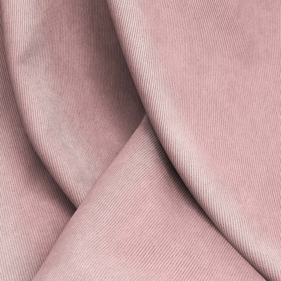La tela base es la Pana Aterciopelada - Dublin, compuesta por 85% de poliéster, 12% de poliamida y un 3% de elastano, con un gramaje de 280 gr/m2 y un ancho de 150 cm. El color liso impreso es de un tono rosa pastel, generado por un proceso de sublimación con una combinación de tinta de cyan, magenta, yellow y black (12 42 28 1), que le confiere su brillo característico. Este color rosa pastel es un pigmento secundario generado por la mezcla de cyan, magenta y yellow en diferentes intensidades, lo que le otorga un carácter suave pero con cierta profundidad. Combina especialmente bien con otros tonos pastel, especialmente el verde menta y el amarillo pálido.