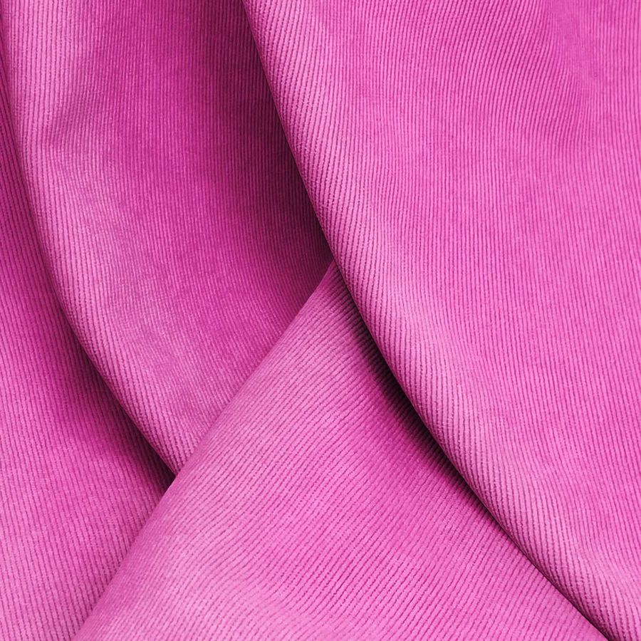La tela base de la Pana Aterciopelada - Dublin es una pana compuesta por un 85% de poliéster, un 12% de poliamida y un 3% de elastano, con un gramaje de 280 gr/m2 y una anchura de 150 cm. Su color liso impreso es un rosa plástico con un CMYK de 2 76 0 0. Este color se distingue por su matiz brillante, que lo convierte en un color atractivo y enérgico. Además, su matiz rosa puede combinarse con otros colores como el gris, el negro y el blanco. Cabe destacar que, aunque la tela base no está teñida, sino impresa por una sola cara, el color impreso es resistente al desgaste y a la decoloración.