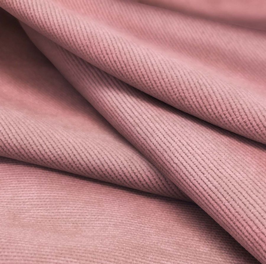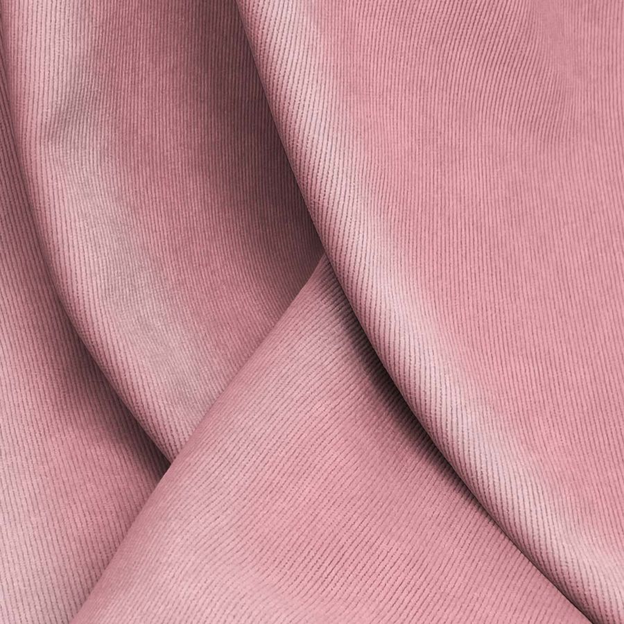 La tela base es la Pana Aterciopelada - Dublin, compuesta por 85% POLIÉSTER, 12% POLIAMIDA y 3% ELASTANO con un gramaje de 280 gr/m2 y un ancho de 150 cm. El color liso impreso es un rosa ruddy con un CMYK de 10 54 30 1. Este color tiene una textura visual brillante que recuerda a un atardecer cálido. Combina particularmente bien con tonos cálidos como el naranja y el marrón. Es importante destacar que el tejido base está impreso con el color liso a una sola cara por impresión digital textil.
