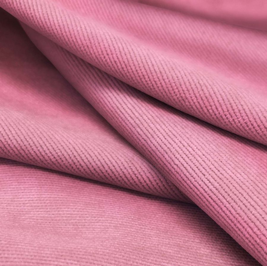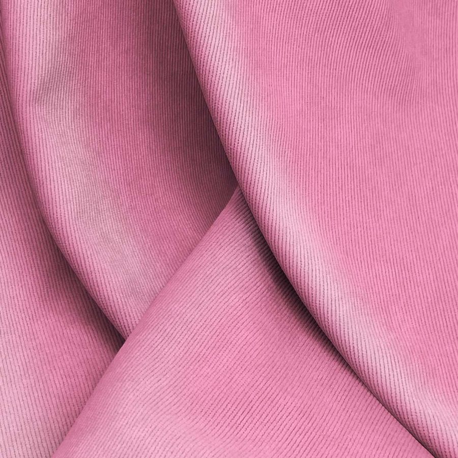 La tela base de este tejido es la Pana Aterciopelada - Dublin, compuesta por 85% poliéster, 12% poliamida y 3% elastano, con un gramaje de 280 gr/m2 y un ancho de 150 cm. El color liso impreso es Rosa Tickle Me, con un CMYK de 0 63 11 0. Este color es un tono suave de rosa pálido que transmite dulzura y romanticismo. Simbólicamente, el rosa representa la delicadeza y la compasión, pero también puede simbolizar el amor y la feminidad. Además, el color Tickle Me combina bien con otros tonos pastel, como el amarillo y el verde menta.