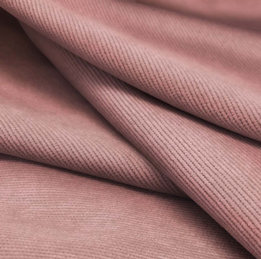 La tela base es la Pana Aterciopelada - Dublin, compuesta por un 85% de poliéster, un 12% de poliamida y un 3% de elastano. Su gramaje es de 280 gr/m2 y su ancho de 150 cm. El color liso impreso es de un hermoso tono Rosa Viejo, con un CMYK de 21 55 38 9. Este color es un tono cálido y suave, lo que le otorga un toque romántico y femenino. Combina a la perfección con otros colores como los verdes y los grises.