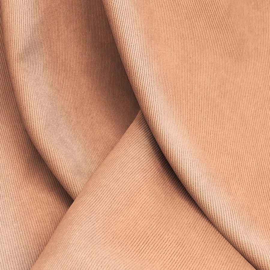 La tela base de esta referencia es la Pana Aterciopelada - Dublin, compuesta por un 85% de poliéster, un 12% de poliamida y un 3% de elastano, con un gramaje de 280 gr/m2 y un ancho de 150 cm. El color liso impreso es un Rosa Salmón Luz, cuyo CMYK es 0 47 51 0 y se caracteriza por su tonalidad suave y cálida. Este color combina perfectamente con tonos tierra, neutros y también con diferentes tonalidades de rosados y coral.