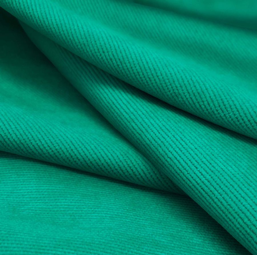 La Pana Aterciopelada - Dublin es una tela suave al tacto y muy brillante visualmente. Además, es resistente y duradera, lo que hace que sea ideal para tapizar muebles o crear prendas con una larga vida útil. El verde acuático impreso se caracteriza por su suavidad y suavidad, siendo un color que combina perfectamente con tonos tierra como el beige o el marrón, y colores azules más oscuros como el azul noche.