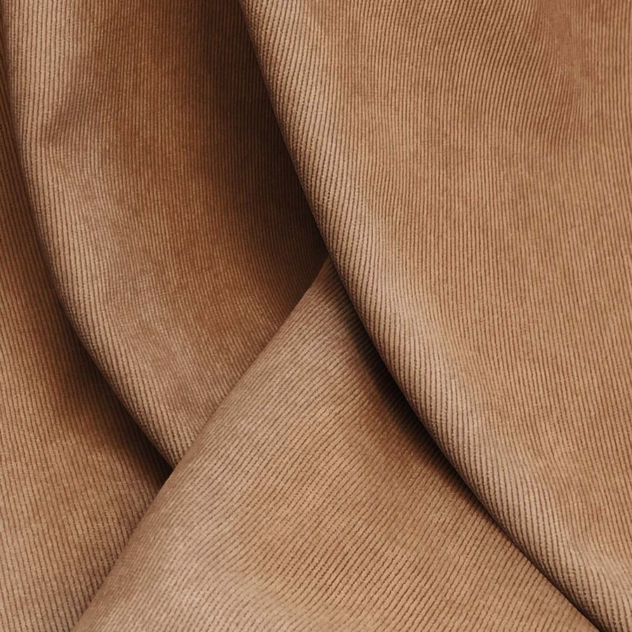 La tela base de este tejido es una Pana Aterciopelada - Dublin, compuesta por 85% poliéster, 12% poliamida y 3% elastano. Se presenta en un color marrón canela en rama, impreso con la tecnología de sublimación, con los siguientes valores de CMYK: 30 56 70 28. Este color combina muy bien con tonalidades beige, doradas y terrosas, lo que lo convierte en una elección ideal para la decoración del hogar y la moda de invierno.