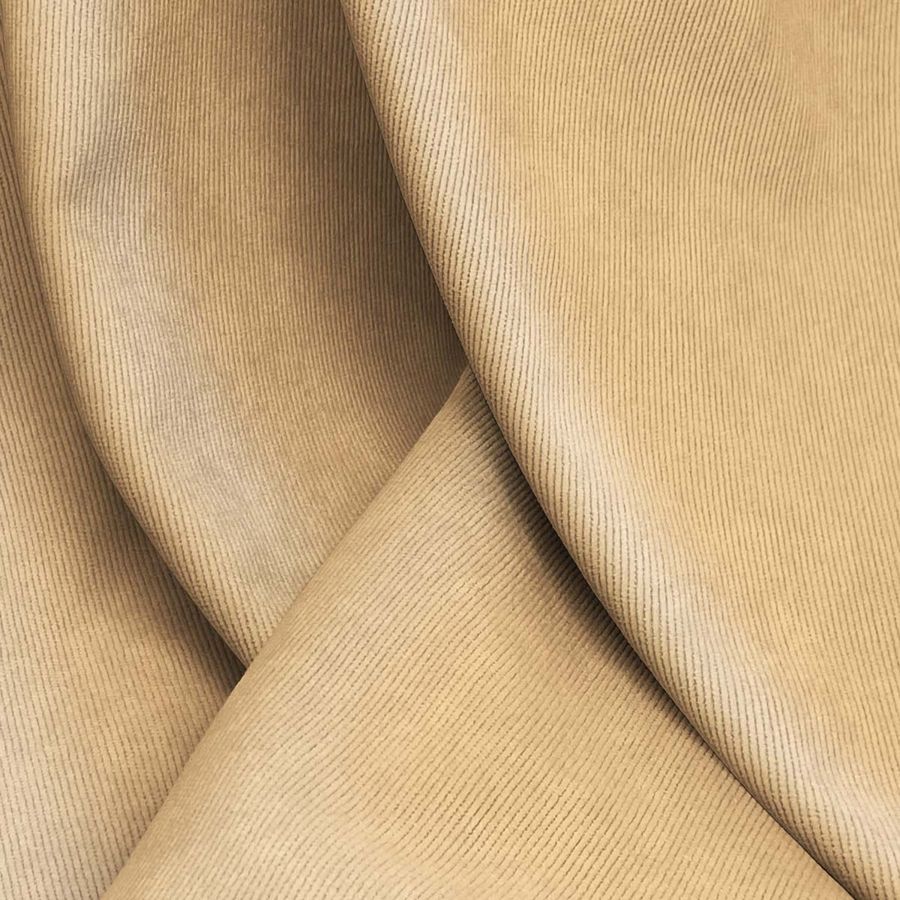 La tela base es la Pana Aterciopelada - Dublin, compuesta por un 85% de poliéster, un 12% de poliamida y un 3% de elastano, con un gramaje de 280 gr/m2 y un ancho de tela de 150 cm. El color liso impreso es de un marrón caramelo, con una tinta cyan del 7, magenta del 33, yellow del 56 y black del 1, representando un CMYK del 7 33 56 1.