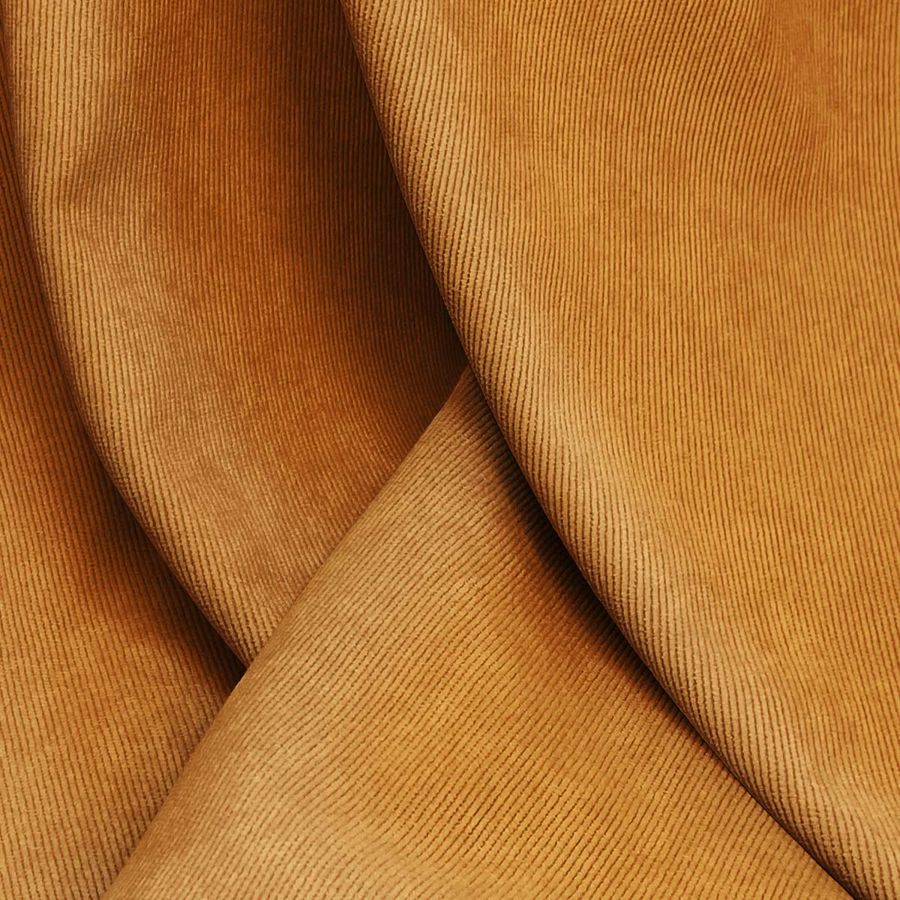 La tela base de este tejido es la Pana Aterciopelada - Dublin, es una tela de pana compuesta en un 85% por poliéster, un 12% por poliamida y un 3% por elastano con un gramaje de 280 gr/m2 y un ancho de 150 cm. El color liso impreso es un marrón brillante con un CMYK de 23 63 97 13. Este color secundario es un tono cálido y elegante que transmite comodidad y sofisticación. Combina muy bien con otros colores tierra y tonos crudos creando un ambiente relajado y acogedor.
